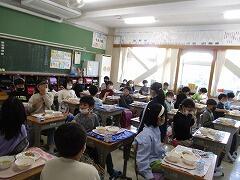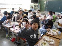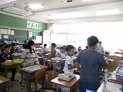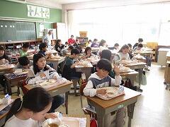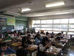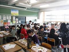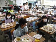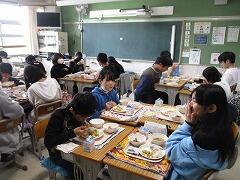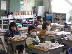 発熱による欠席者の人数が気になるクラスなどは、前を向いて食べています。