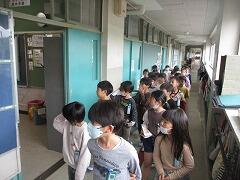 1年生が、集団学校探検を行いました。先日は2年生とペアになり、地図を片手に回りました。今日は、クラスごとに特別教室を中心に回りました。