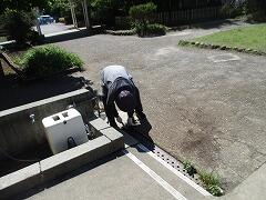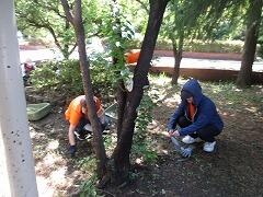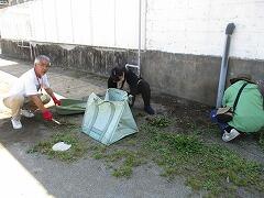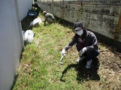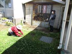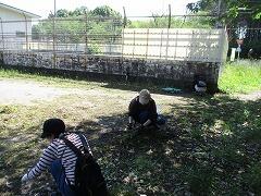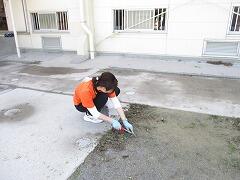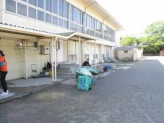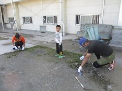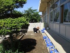 今日は合同練習で、全校児童が椅子を持って外に出ます。椅子を置く場所を示すために必要な作業をしてくれました。