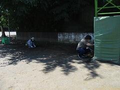 少しぬかるんだ校庭で、場所決めからのスタートでした。