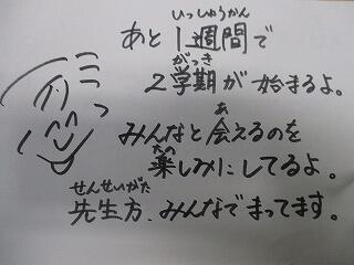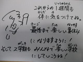 長かった夏休みも残り1週間。良い毎日が過ごせるよう、体調管理をお願いします。