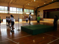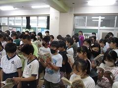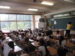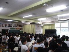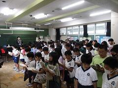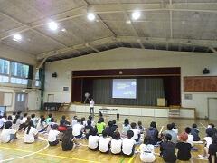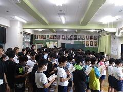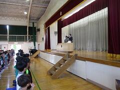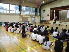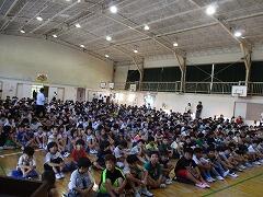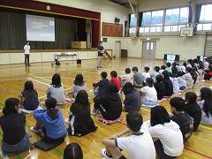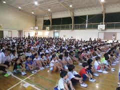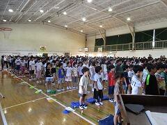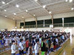 5年生が体育館に集まっています。何をしているのでしょう。
