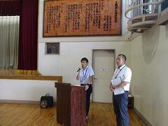 9月から新しく仲間入りした先生が、朝は職員の前で、始業式では児童の前で自己紹介をしました。