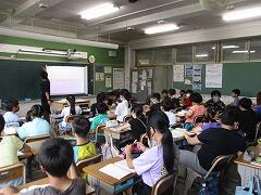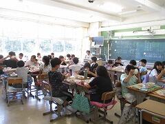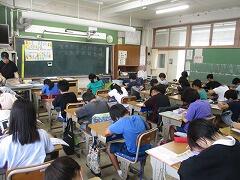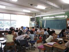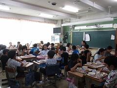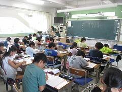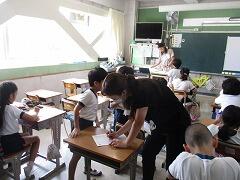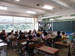 まずは、授業風景を参観しました。丸つけ隊の活動も見ていただきました。