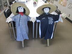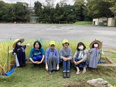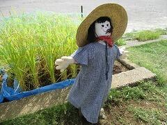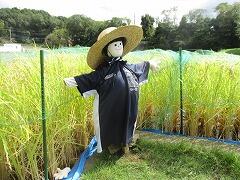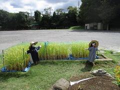 地域の角田さんが岩石園の稲の見守りのためかかしを作ってくださいました。