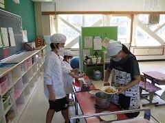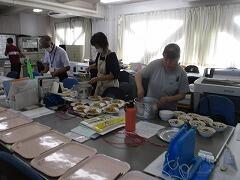 通常日課で朝から給食室での給食の準備も始まりました。調理員のみなさん、2学期もよろしくお願いします。