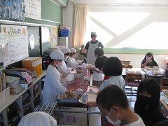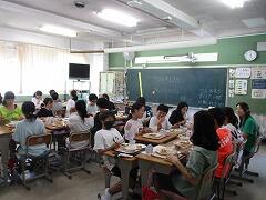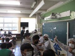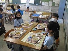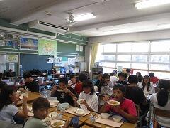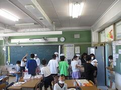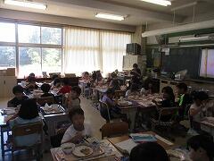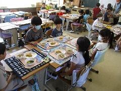 対面で食事をするという当たり前の風景が戻りました。児童の健康状態によっては前を向いて食べることもありますが、日常的にはもう対面です。おいしい給食を楽しい雰囲気の中で食べる、これが大切なことです。