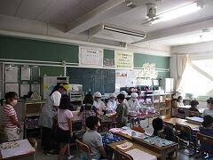 栄養士の秦野先生は、この時間、校舎内を動き回って子どもたちの様子を見ています。