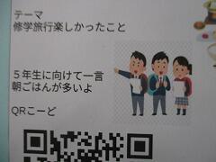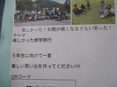 「修学旅行」の文字と「5年生への一言メッセージ」が書いてあり、QRコードがついていました。