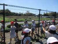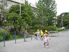 ここでは15分の休憩を取り、水分補給だけでなく、限られたスペースで自由に遊びました。「見て見て、校長先生」と鉄棒やうんていなどいろいろな場所から声がかかり、いつもの元気な2年生の姿を見ることができました。