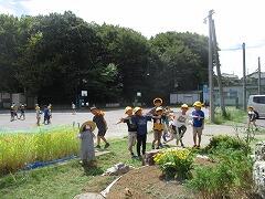 稲の収穫については、ホームページ内「ここまでのコミュニティスクールのあゆみ」9月19日分にアップしましたが、その稲があった場所に芝生を植えてくださっていました。