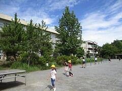 学区にどんなものがあるかを新たな目で見つける探検です。普段、友達と歩いたり走ったりしている時とは違う視点で、今まで気づかなかったことに気づいたりするのも楽しみの1つです。