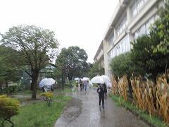 雨の中の登校と交流会事前説明会(校長室より)
