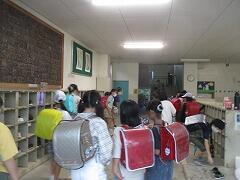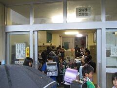 「校長先生、靴下がびしょびしょだよ」と話しかけてきた子。「長靴はいてきてよかった」とつぶやく子。「靴下ぬれちゃったけど替えの靴下も持ってまーす」と笑顔の子。いろいろでした。