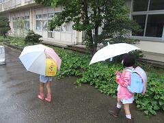 本校では、メールでお知らせした対応をとらせていただきました。昼には教頭先生が放送で「下校時、雨が強く降る時間帯もありそうなので、寄り道をしたりせずにまっすぐお家に帰りましょう」と子どもたちに呼びかけました。結果的には、下校時の雨は激しくなかったので子どもたちはいつものように下校していきました。ほっとしました。