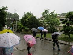 雨の一日でした。登下校時に、雨が強く降る時間帯もありましたが、風、雷などがなかったので通常通りの下校としました。