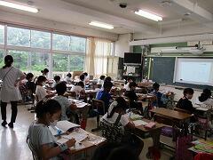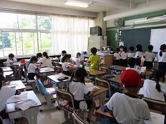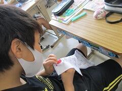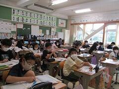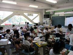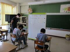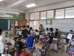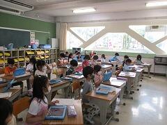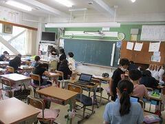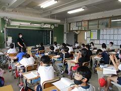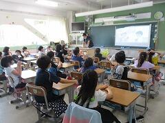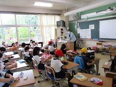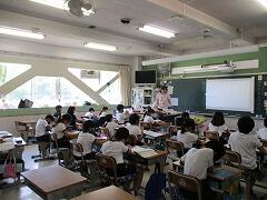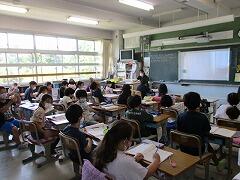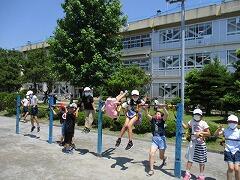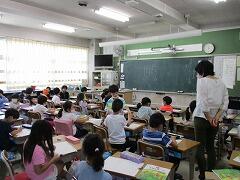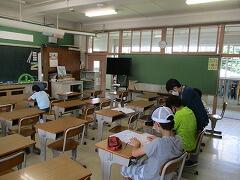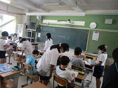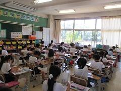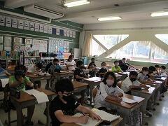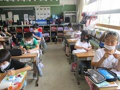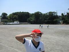 朝一番に養護教諭の森先生が、暑い時期のマスク着用について全校に放送で呼びかけました。そのあと私から外に出るときは帽子をかぶるよう話しました。業間休みには、きちんと帽子をかぶった子どもたちが元気に校庭に出てきました。