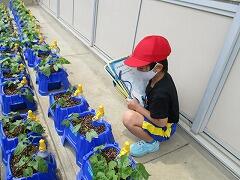 1年生は、自分の鉢にたくさんの花がつくように、毎日毎日登校したら水やりをしています。