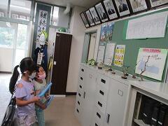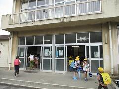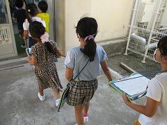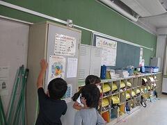 曇り空のもと、今日も子どもたちが元気に登校してきました。朝から委員会の仕事もがんばっています。