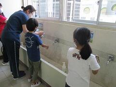 子どもたちにも場面場面で呼びかけていきますが、お家でも話題にしていただき、新しい生活様式の一つとして子どもたち一人一人の身についていくと良いですね。