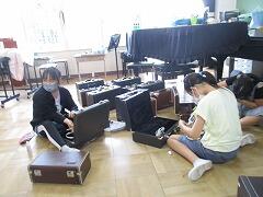 今日は、ほとんどの児童が自分の楽器のチェックからスタートです。