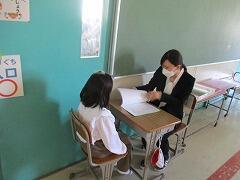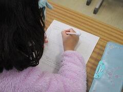 1年生がこの1年間でできるようになったことなどを記入している場面です。
