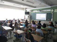 西村先生が、新学期への心構えについてとともに、「規則正しい生活をしよう」「交通ルールを守ろう」「情報機器の使い方に気をつけよう」について話しました。