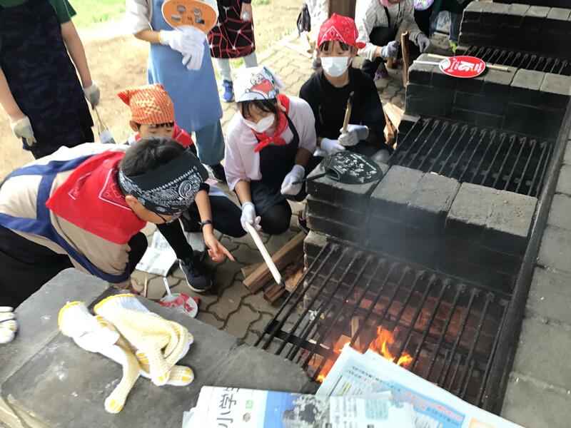 R5.9.21_林間学校速報⑩ 投稿日時 : 2023/09/21 豊小学校 #野外炊飯#カレー作り#かまどで#おいしくできたよ#第1回バナナ選手権 {{options.likeCount}} {{options.likeCount}}
