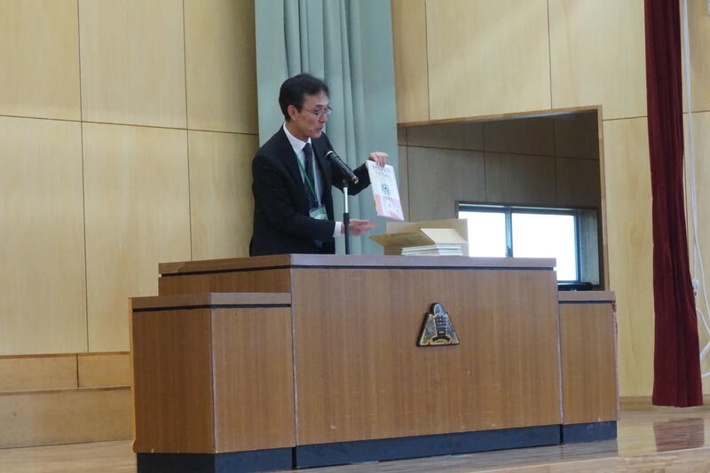 校長先生からはみつばち文庫からいただいた本の紹介がありました。