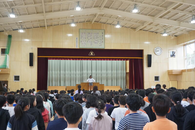 小林先生の「時間を守って生活しよう」という生活目標についてのお話をみんなしっかり聞いていました。
