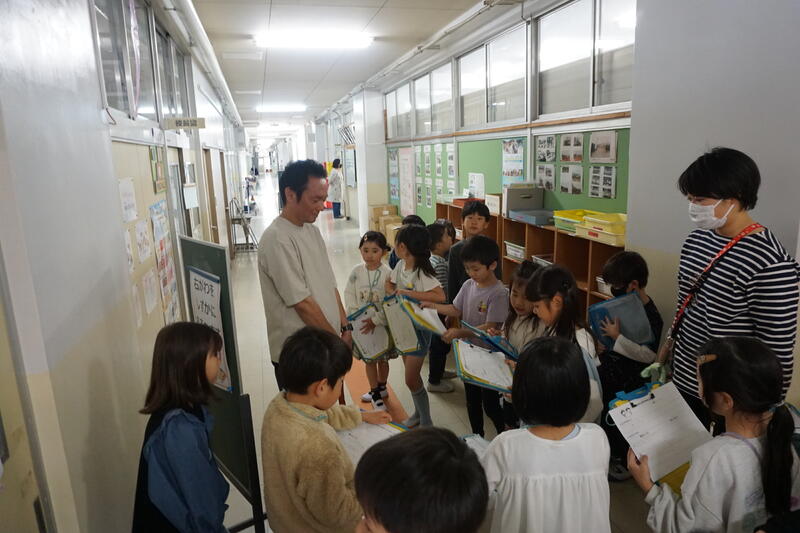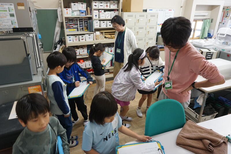 職員室や事務室など,普段あまり行かないような場所へ行き,熱心に質問やメモをしていました。