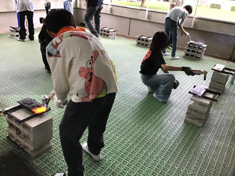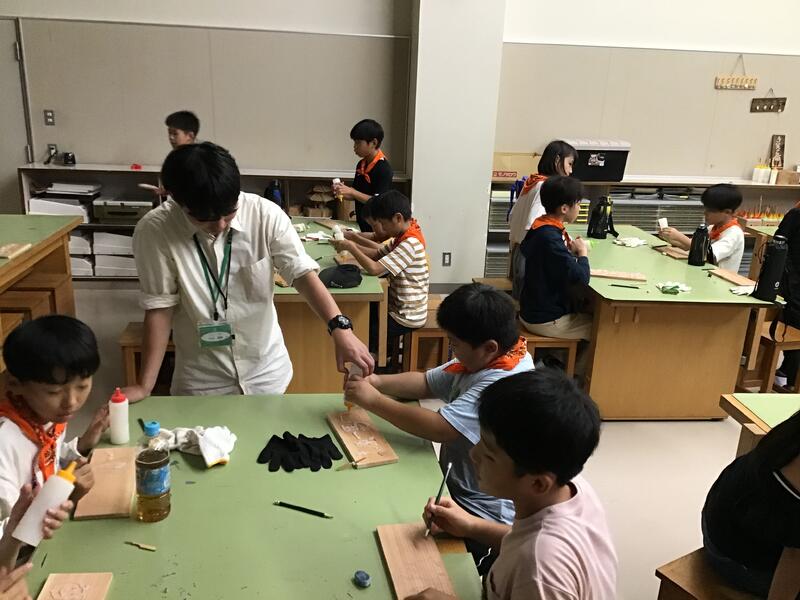 二手に分かれて,「勾玉」と「焼杉」希望した物をみんなで作りました。