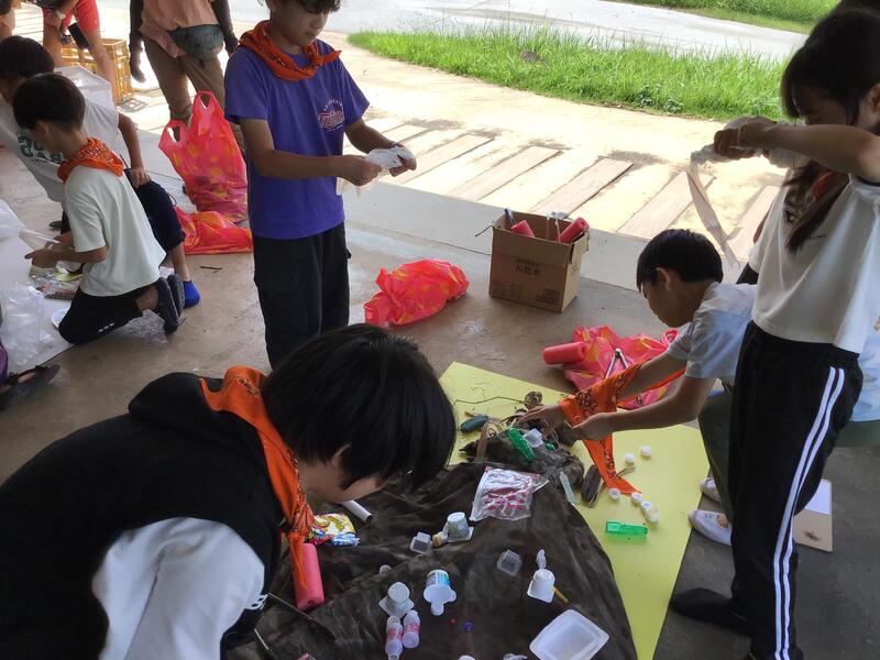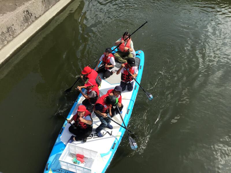 ③「推しゴミ体験&ゴミアート作り」では,まず手賀沼周辺のゴミ拾いをしました。水上のゴミを拾うために,なんとSUP体験までできちゃいました!拾い集めたゴミでアート制作をしたことで,自然環境を大切にすることの重要性を改めて学びました。
