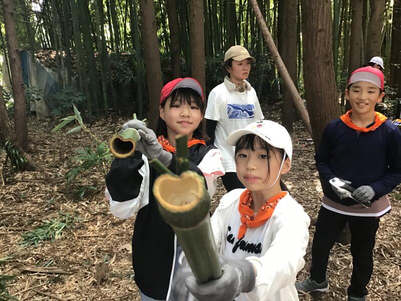 ④「竹林整備体験と竹ランタン作り」では,竹林の中で竹を実際に切りました。切った竹を利用してランタンを制作しました。実際に明かりもつく,クオリティの高い作品がたくさん出来上がりました!