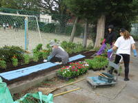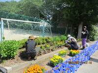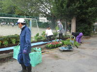 本校の用務員と一緒に花壇の手入れを定期的にしてくださっています。