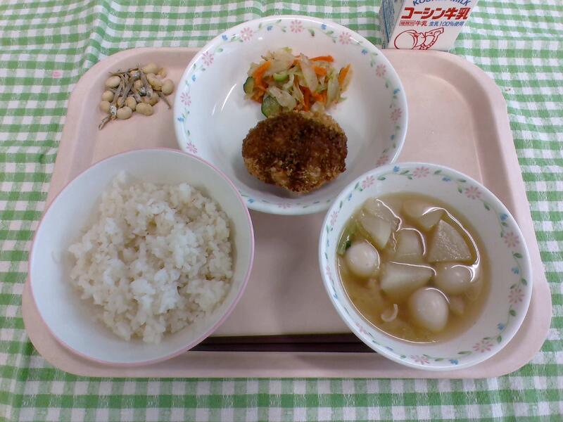 一覧へ じゃがいものコロッケ 日時 2024年10月01日(火) 公開対象 給食室より 詳細 ごはん・じゃがいものコロッケ・にんじんとごぼうのサラダ・うずら卵とかぶのスープ・大豆小魚・牛乳 作成者 豊小学校管理者 更新日時 2024-10-01 13:55:52