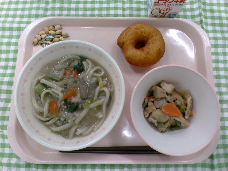 一覧へ 豆腐ドーナツ 日時 2026年02月17日(火) 公開対象 給食室より 詳細 けんちんうどん 里いもと鶏肉の煮物 豆腐ドーナツ 大豆小魚 牛乳 作成者 豊小学校管理者 更新日時 2026-02-17 13:26:34