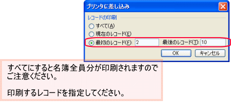 プリンタに差し込み をクリックします。表示されるダイアログボックスで、印刷を選択します。 ![]() ※賞状は、手差しトレイ(MTトレイ)に入れて印刷します。(プリンタの給紙場所変更) 用紙によってプリンタにある用紙サイズのダイヤルも合わせてください。 |