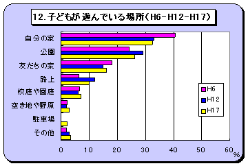 | ○主な遊び場は,近くの公園や自宅。(10年前とほぼ同じ) |