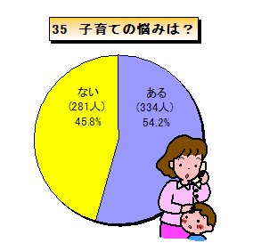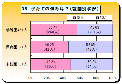 『子育ての悩み』は,半数以上の親が「ある」と回答しています。就園別にみると幼稚園児の親がやや多いようです。