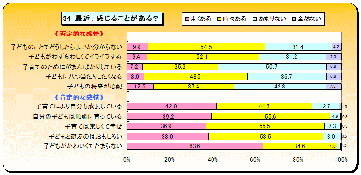 | ★『子育ての悩み相談」に対する保護者の意識やその状況を,「育児やしつけをする人」や「子育てに対する最近の感情」という観点から調べました。 |