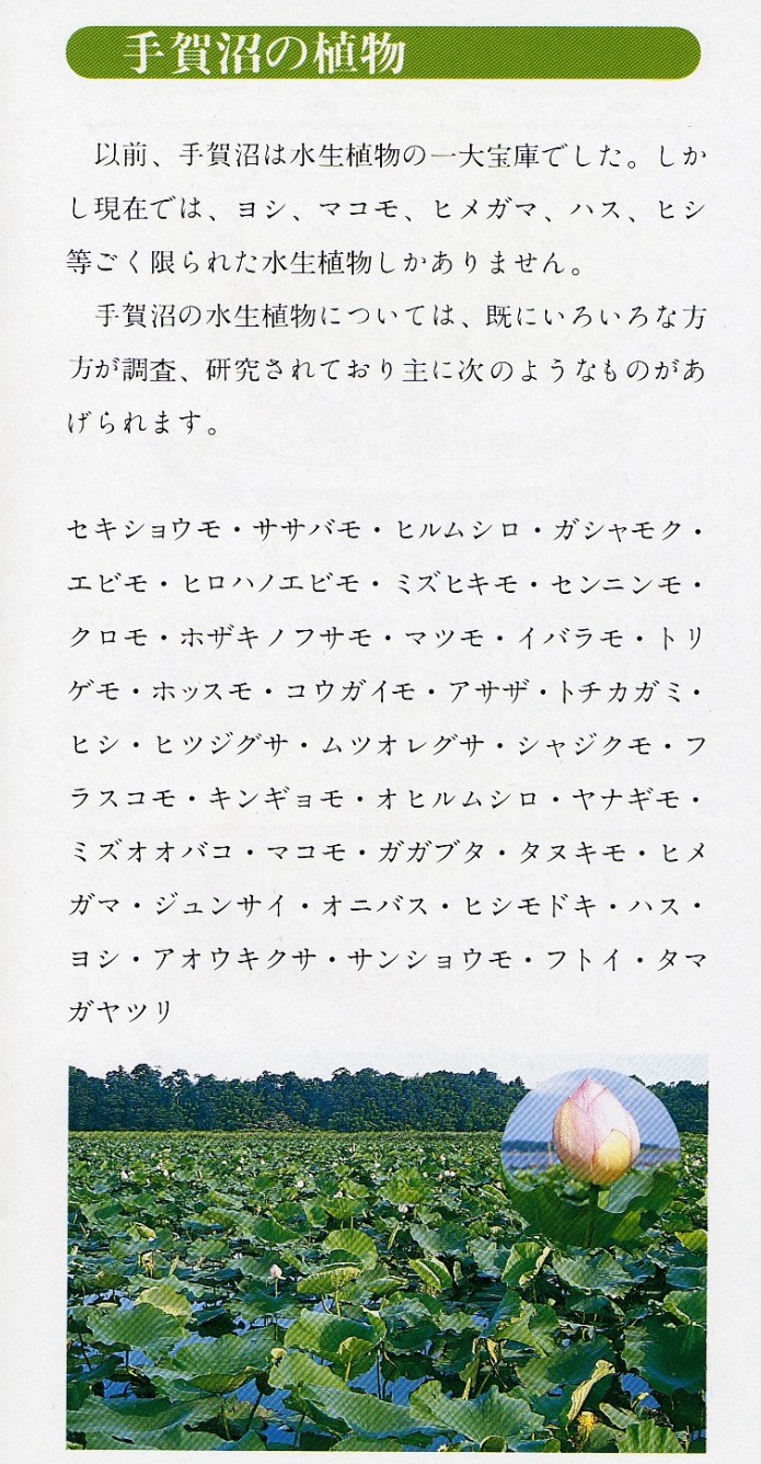 手賀沼の植物 我孫子市手賀沼課が作成したポケット型のパンフレットです。